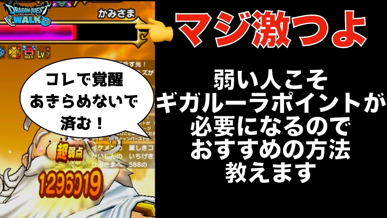 ▼【ドラクエウォーク】ギガモンかみさまが強すぎる?諦めないでギガルーラポイントを集めて覚醒する方法▼
