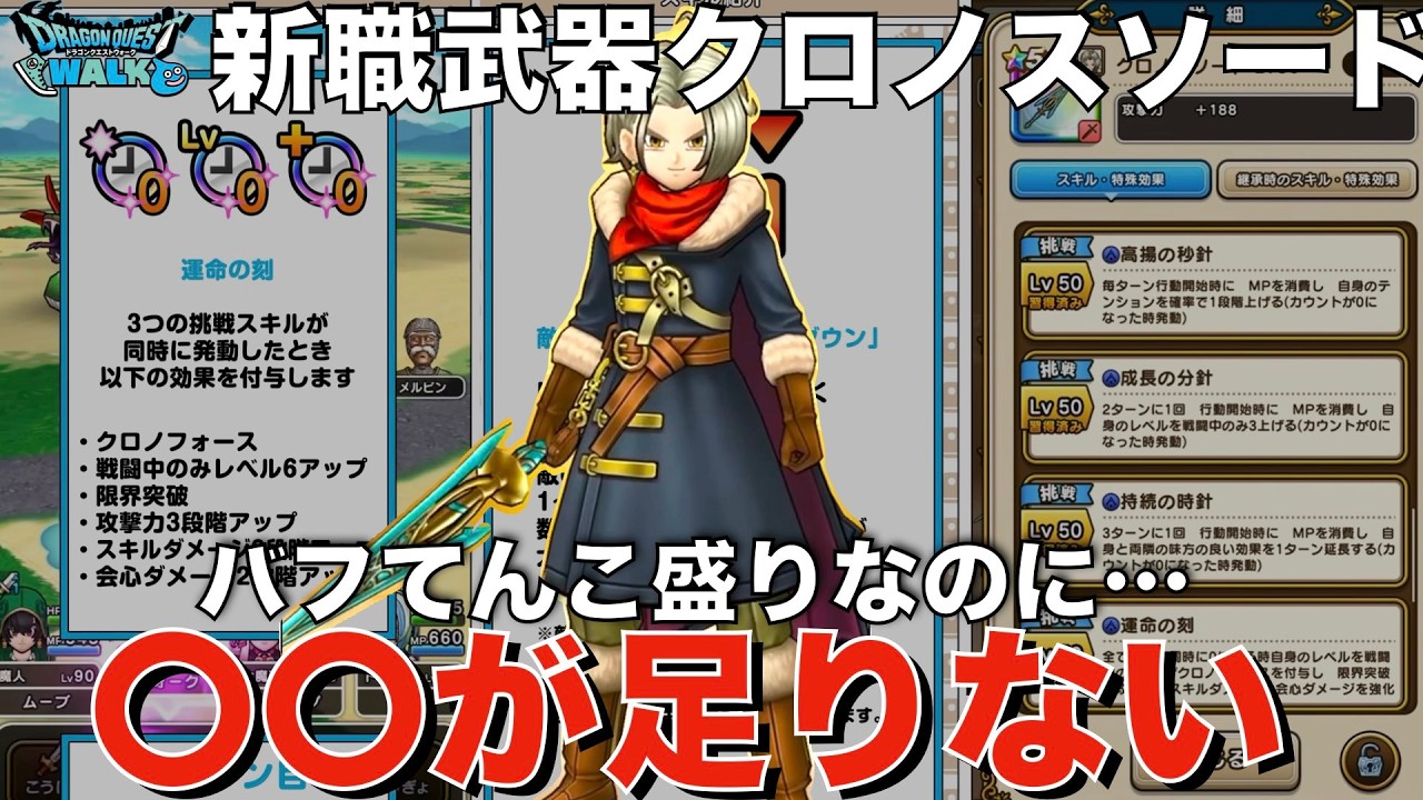 ついに新職業「時渡りの剣士」の実装とともに、新武器**「クロノスソード」が登場しましたね! 皆さん、もうスペックは確認しましたか?結論から言うと、手持ちに強力なバフ武器がない人や新規勢の方にとって「ドラクエウォークの景色が完全に変わる、とんでもない自己完結武器」**となっています。